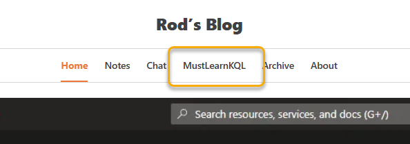 You can still find all the pertinent links and information at https://aka.ms/MustLearnKQL, but now, using Substack’s tagging system, the Must Learn KQL content has its own place on my blog right in the top menu.