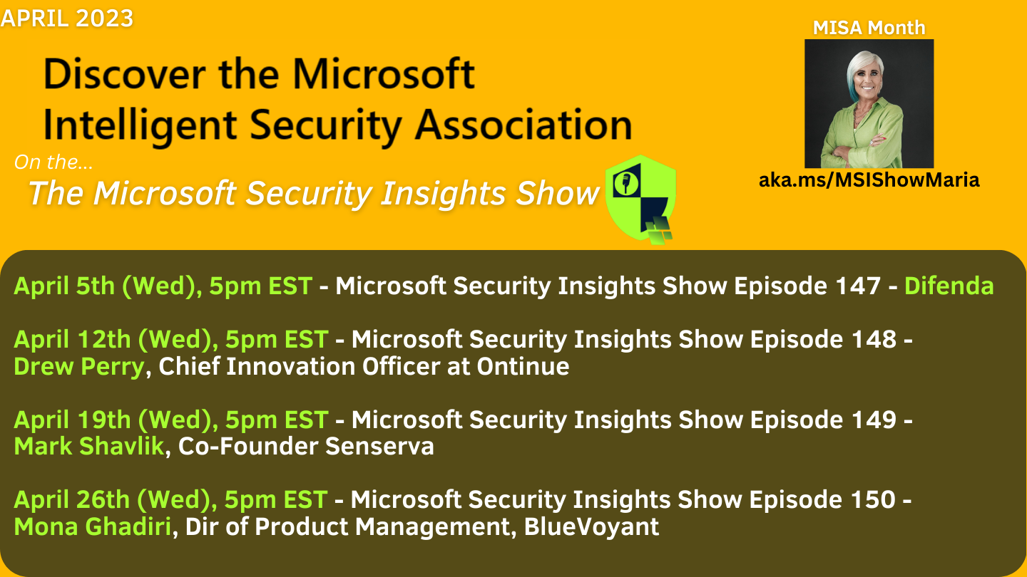 Next month, the Microsoft Security Insights show kicks off a series talking with several MISA members in the run-up to the RSA conference. I hope you can join.